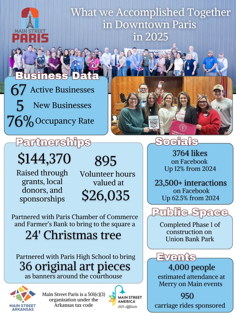 Whether you're a lifelong local, a new neighbor, or just passing through, Main Street Paris is here to welcome you with open arms and a full calendar.